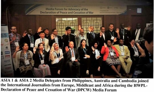 During the Proclamation Ceremony of the Declaration of Peace and Cessation of War, Man Hee Lee, Chairman of HWL said:
