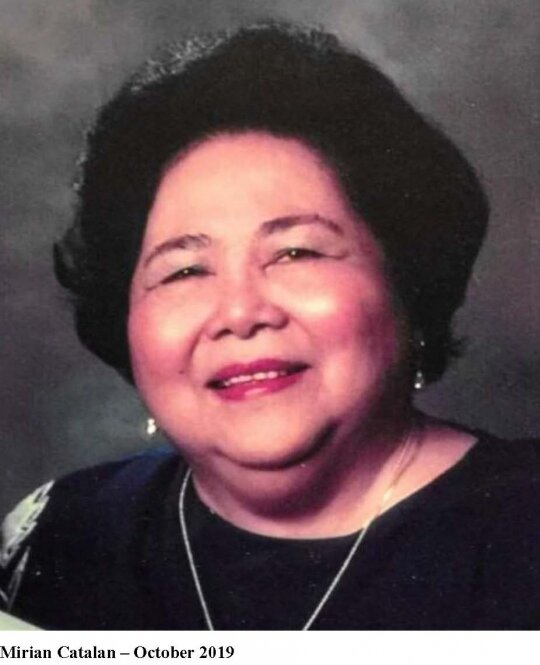 Mirian was preceded in death by her husband Charles, who passed away four years ago. She is survived by her brothers Manolo and Leny, younger sisters Andex and Chuchi, stepdaughter Sharon, cousins, nephews, and grandchildren.