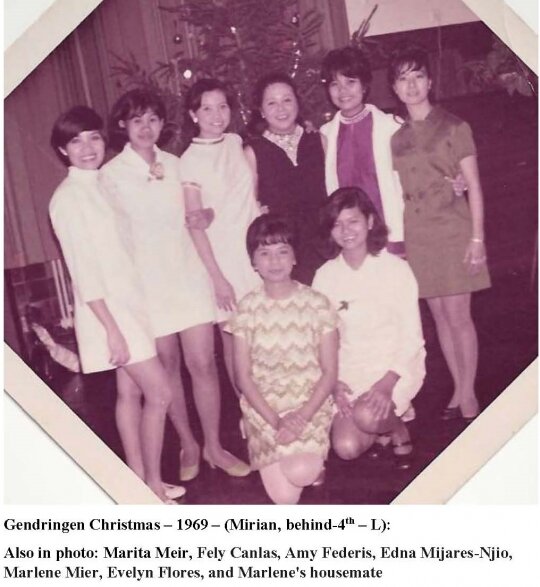 Besides acting as representative and liaison between the two governments of the Philippines and the Netherlands, her day-to-day duties as social worker included managing and safeguarding the special needs of “her girls” --living with them, and being not only a wise and compassionate counselor but also a knowledgeable and inspiring guide, staunch companion, faithful friend, and beloved surrogate mother to all. In October 1969, she returned to the Netherlands with a new contingent of 50 girls, this time to work and reside until November 1972 in the beautiful, bustling city of Amsterdam, capital of the Netherlands. Long after their work contracts ended, Mirian got her reward and supreme joy in the abiding love and loyalty of her girls. Throughout these years until her recent passing, that special bond stayed unbroken.